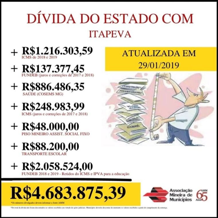 ATUALIZAÇÃO DE VALORES DA DÍVIDA DO GOVERNO DE MINAS GERAIS COM O MUNICÍPIO DE ITAPEVA/MG