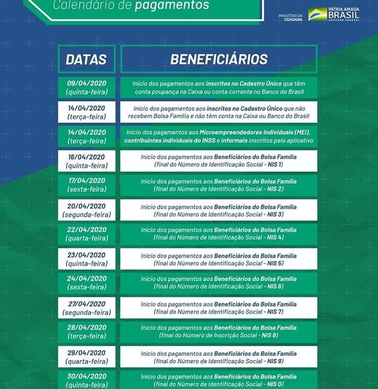 Atenção ao calendário de pagamentos do auxílio emergencial!
