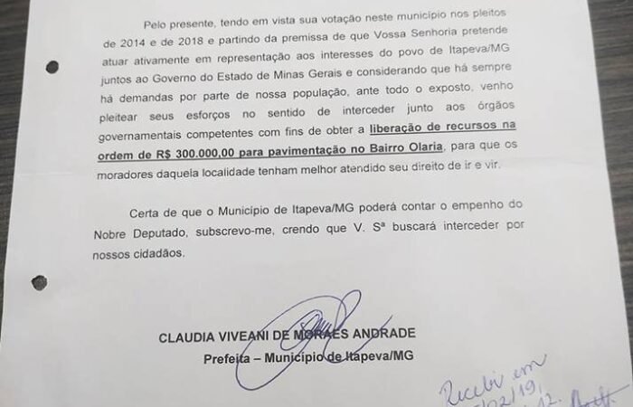 Em visita recente em Belo Horizonte/MG ao gabinete do Deputado Estadual Dalmo Ribeiro, a Prefeita Vivi pleiteou junto à Assessoria do Deputado pavimentação para