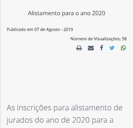 ABERTAS INSCRIÇÕES PARA JURI – 2020 – COMARCA DE CAMANDUCAIA/MG