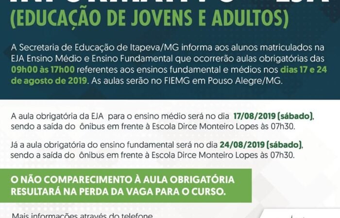 Agora é fato! A Prefeitura de Itapeva/MG, através da Secretaria de Educação, firmou parceria com SESI/SENAI/FIEMG para que haja a EJA (Educação de Jovens