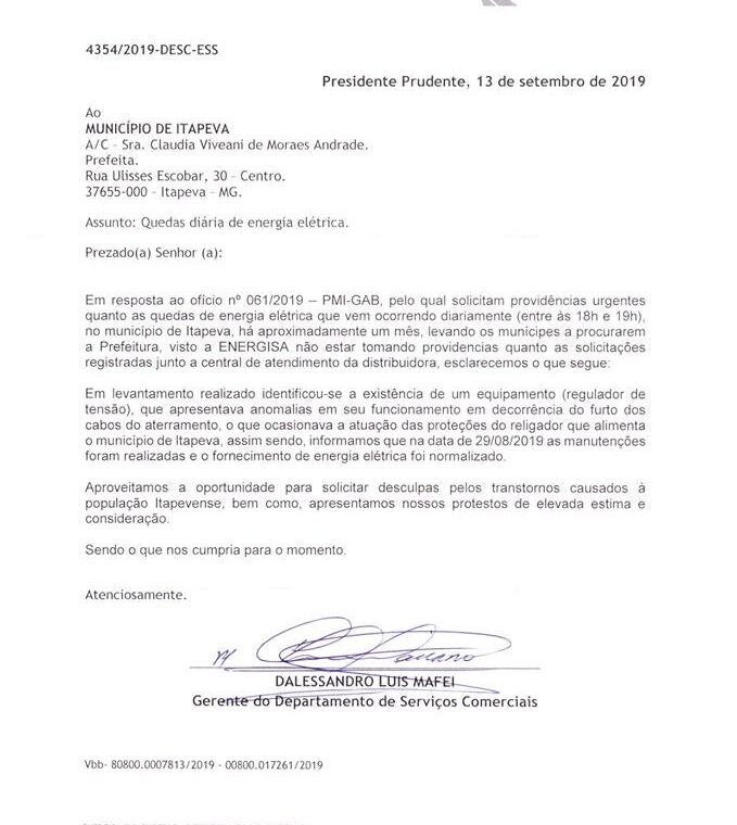 RESPOSTA DA CONCESSIONÁRIA ENERGISA A PEDIDOS DE PROVIDÊNCIA