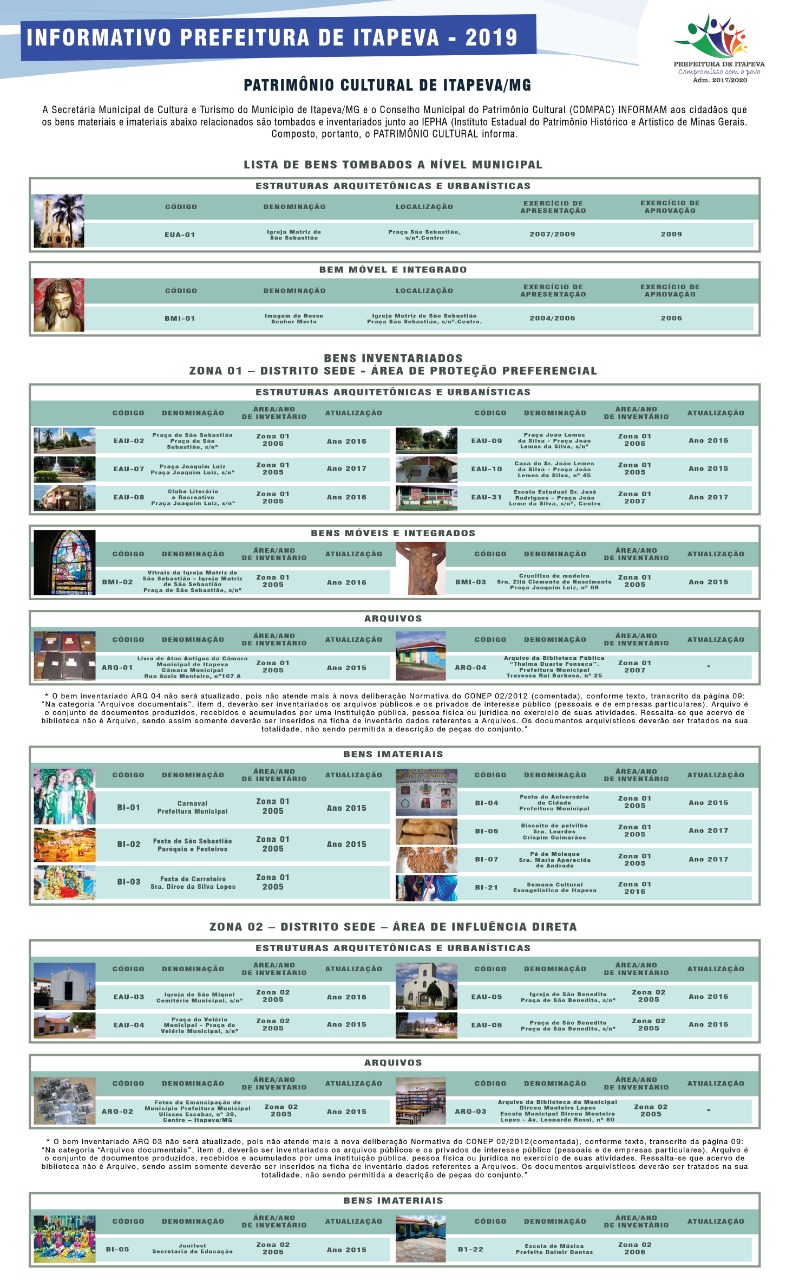 INFORMATIVO ANUAL DE BENS PATRIMONIAIS TOMBADOS/REGISTRADOS DO MUNICÍPIO DE ITAPEVA – MG PARA FINS DE HABILITAÇÃO EM PROCESSO REFERENTE AO ICMS CRITÉRIO PATRIMÔNIO CULTURAL DO ESTADO DE MINAS GERAIS – ANO REFERÊNCIA 2019 – ANO APURAÇÃO 2020 E ANO REPASSE 2021.