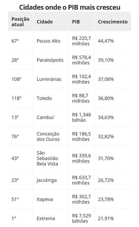 https://g1.globo.com/mg/sul-de-minas/noticia/2019/12/20/pib-do-sul-de-minas-cresce-r-5-bilhoes-em-um-ano-veja-ranking-com-cidades-da-regiao.ghtml?fbclid=IwAR27wueQFqWsjjZG0y2bpmRrtrIqdyz3A1CRkoj1JCv4qiB2sC6j1NMI7VI
