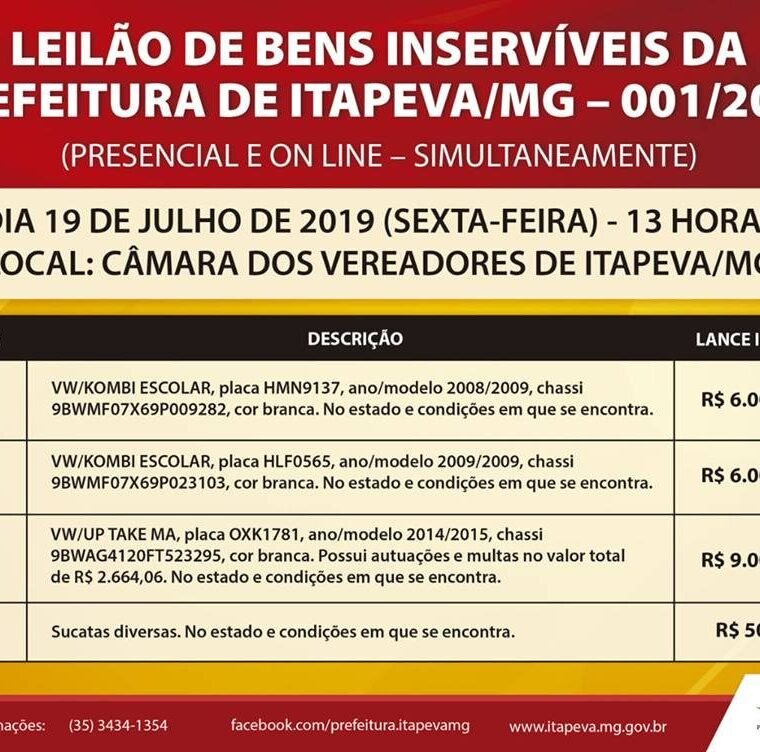 LEILÃO DE BENS INSERVÍVEIS 001/2019