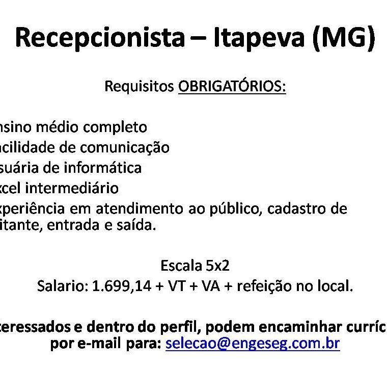 Interessados e dentro do perfil, podem encaminhar currículo por e-mail para: selecao@engeseg.com.br
