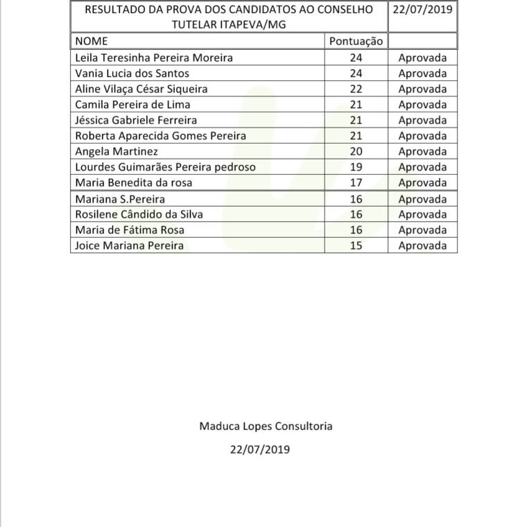 RESULTADO PRELIMINAR – PROVA ESCRITA – ELEIÇÃO DO CONSELHO TUTELAR 2019