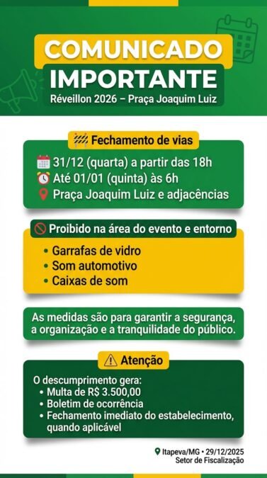 AVISO AOS COMERCIANTES DO ENTORNO DA PRAÇA J. LUIZ – RÉVEILLON 2026