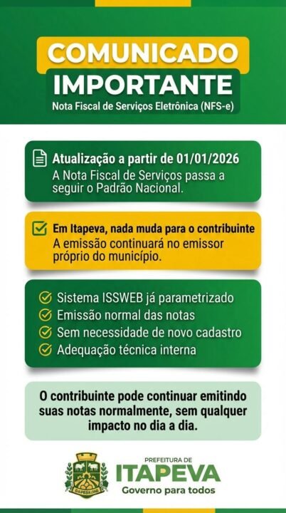 O Setor de Tributos e Fiscalização da Prefeitura de Itapeva/MG, com o propósito de ofertar mais comodidade e acesso à população, INFORMA que, a partir deste sábado – dia 29 de junho de 2019, a …